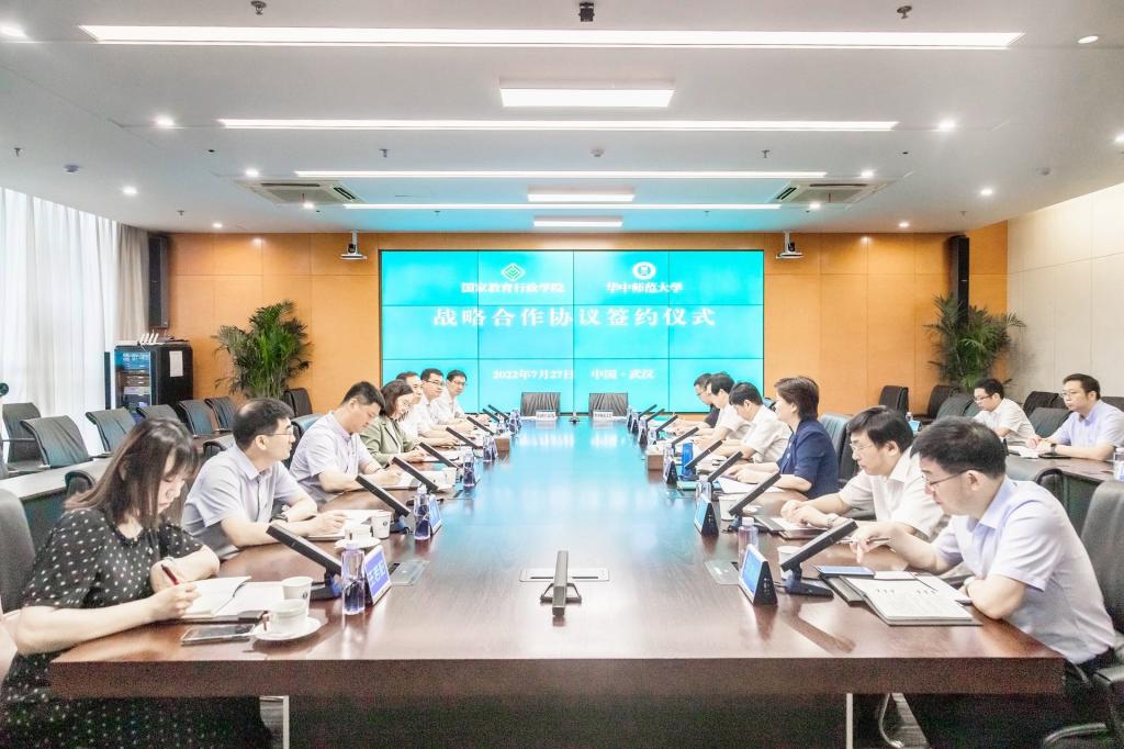 华大在线讯(记者 毛国樨)7月27日,国家教育行政学院与开云网页版登录入口战略合作协议签约仪式在我校南湖综合楼举行。国家教育行政学院党委书记、常务副院长侯慧君、副院长于京天,校党委书记赵凌云、校长郝芳华、校党委副书记陈迪明出席。郝芳华主持签约仪式。