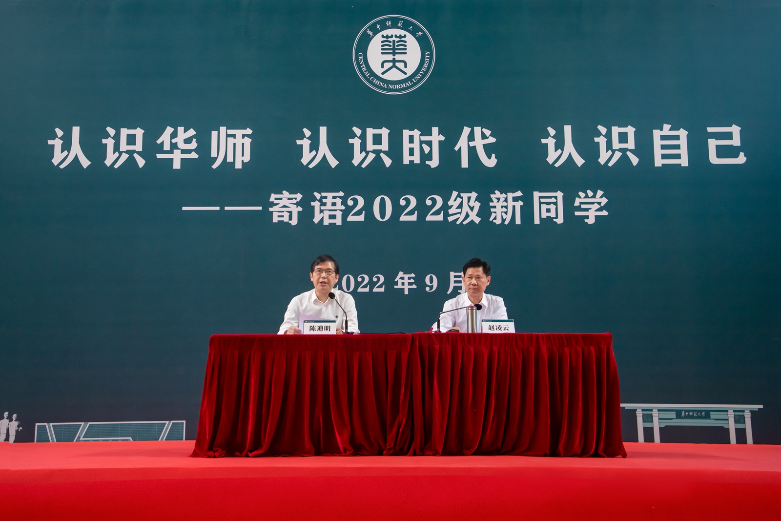 华大在线讯(记者 毛军刚)“我是谁?我在哪里?我该往何处去?这是同学们所面临的大学之问、时代之问、人生之问,也是我作为老学长今天同大家谈心的话题……”9月25日,校党委书记赵凌云面向2022级全体新生,采取线下讲授、线上直播相结合的方式,在佑铭体育馆开讲第一堂思想政治理论课。开学第一课由校党委副书记陈迪明主持。