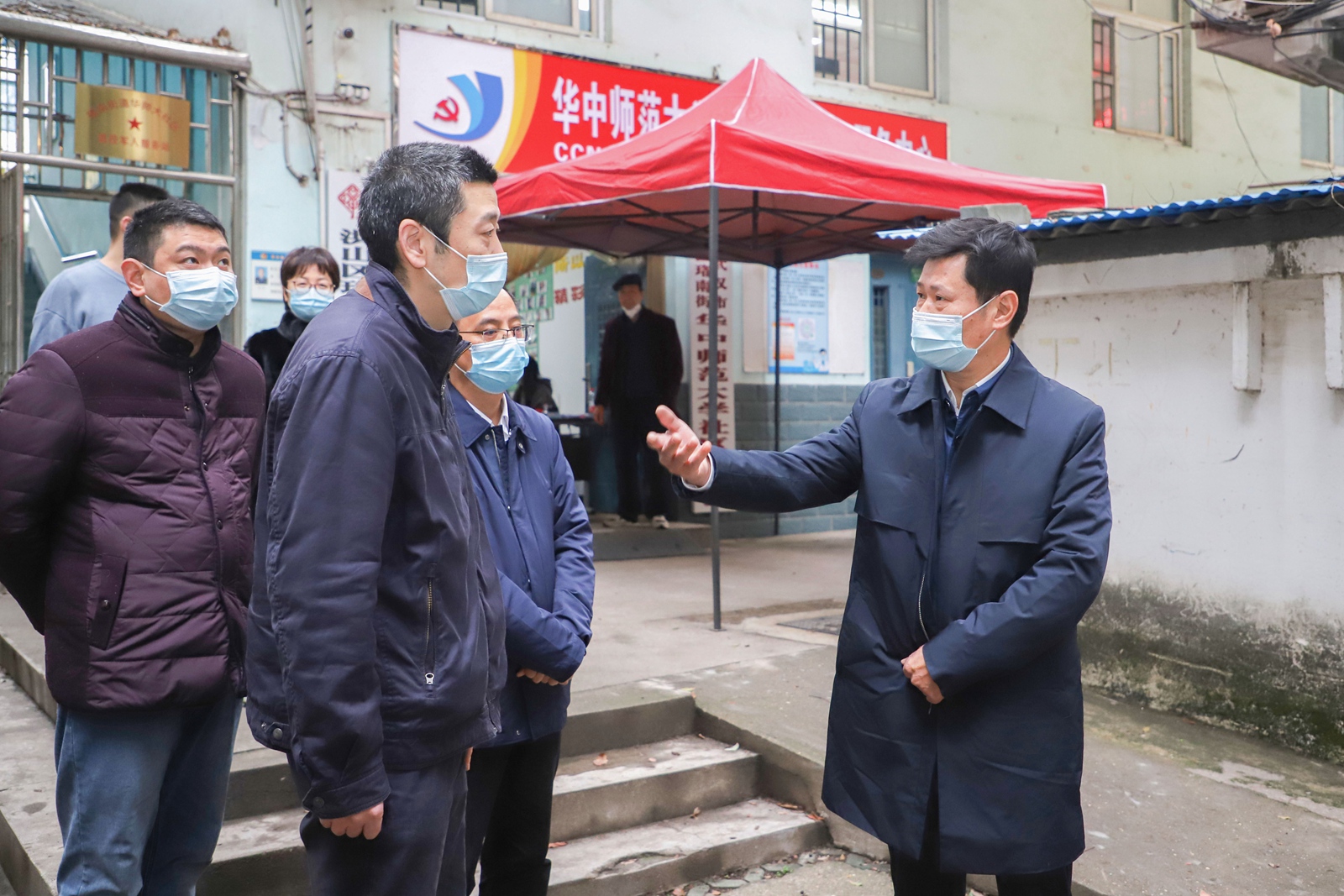 华大在线讯(记者 华轩)11月29日,校党委书记赵凌云,校党委副书记查道林等一行前往华师社区、南湖学生宿舍及南湖校区商户,调研疫情防控措施落实、党员干部下沉一线、学生思想动态等情况。学校办、党委组织部、党委宣传部、党委学工部、人事部、后勤保障部、保卫处等相关负责人参加检查。