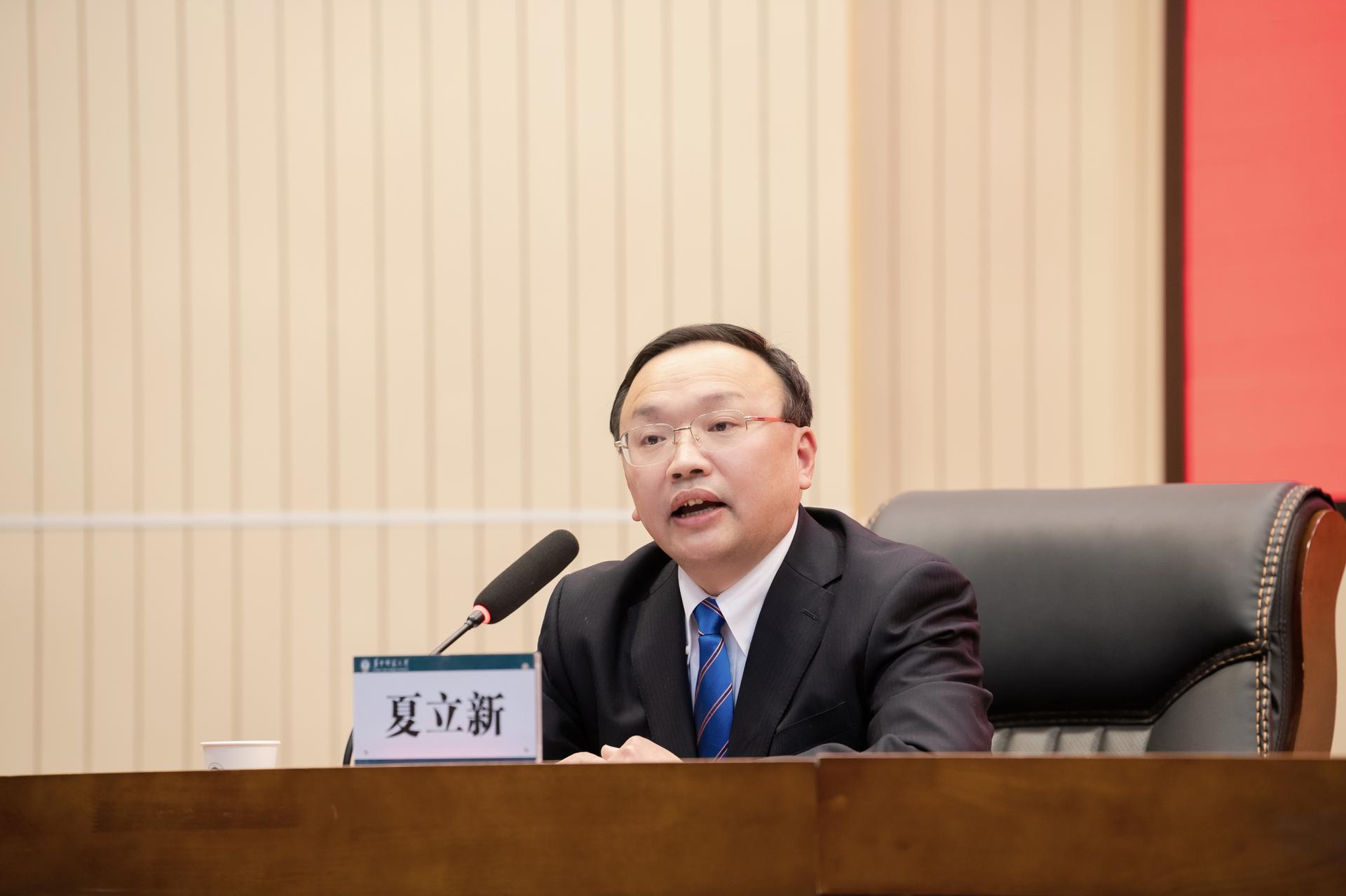 夏立新同志表示完全拥护、坚决服从教育部党组的决定,衷心感谢教育部党组和湖北省委的信任,衷心感谢全校师生的支持,担任新一任校党委书记,深感责任重大、使命光荣。他表示,将尽快转换角色,履职尽责、全力以赴,恪守“对党忠诚”的品格,坚定不移坚持正确的办学方向;坚守“国之大者”的情怀,牢牢把握立德树人的根本任务;接续“勤耕力作”的担当,奋力实现建设世界一流大学的发展目标;保持“永远在路上”的清醒,着力营造廉洁治校治学的政治生态,和郝芳华校长一道,团结带领学校领导班子、全体教职员工和广大校友,齐心协力、坚定笃行,跑好接力赛、赛出好成绩,为铸就新时代华师事业发展新的篇章而不懈奋斗。