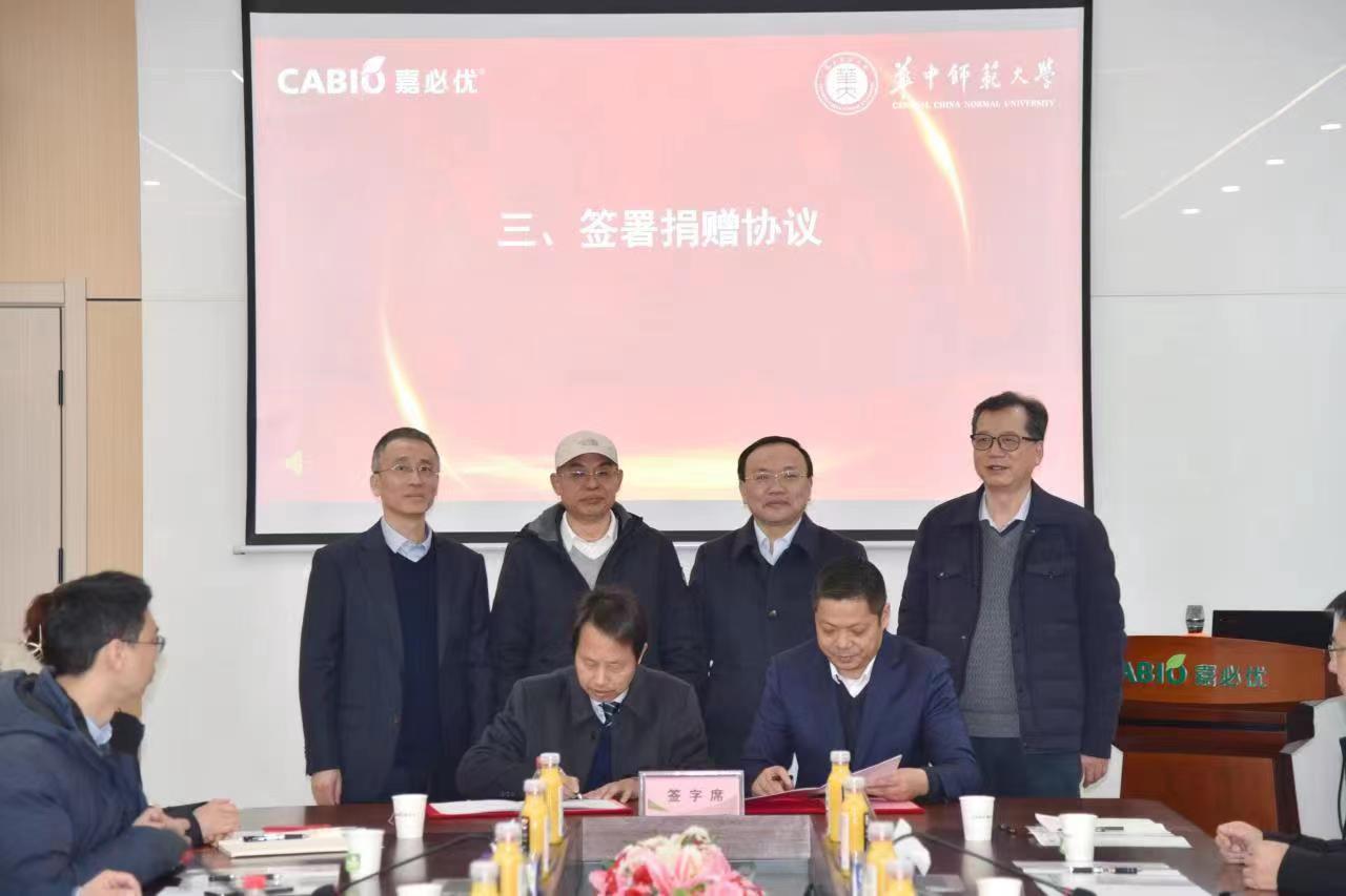 华大在线讯(通讯员 贾世伟 周永)2月7日,嘉必优生物技术(武汉)股份有限公司捐赠仪式暨座谈会在该公司会议室举行。嘉必优生物技术(武汉)股份有限公司董事长易德伟,副董事长杜斌,董事、财务总监王华标,校党委书记夏立新,副校长彭南生出席。捐赠仪式上,历史文化学院校友易德伟、杜斌、王华标携手嘉必优生物技术(武汉)股份有限公司,向我校捐赠1200万元人民币,用于支持学校事业发展和“双一流”建设。
