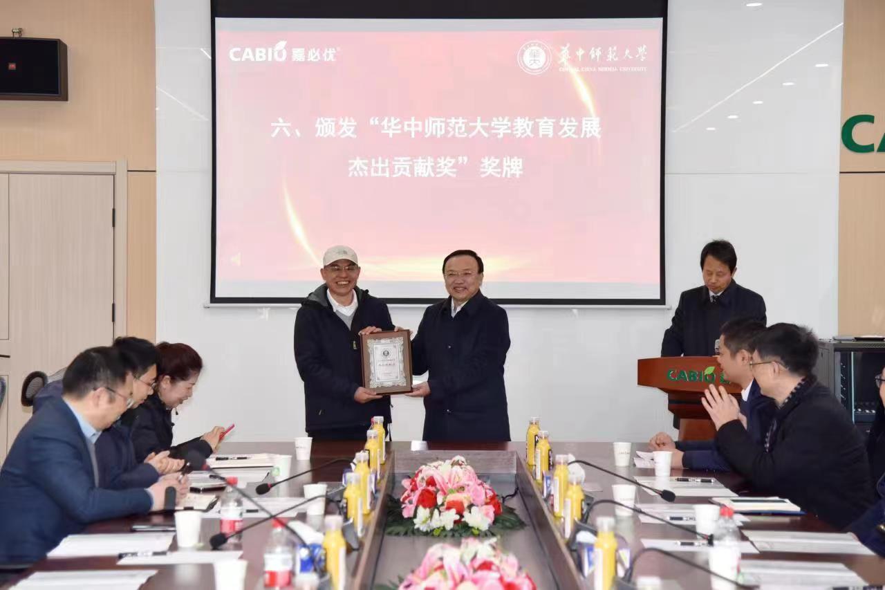 夏立新为易德伟颁发“开云网页版登录入口教育发展杰出贡献奖”奖牌