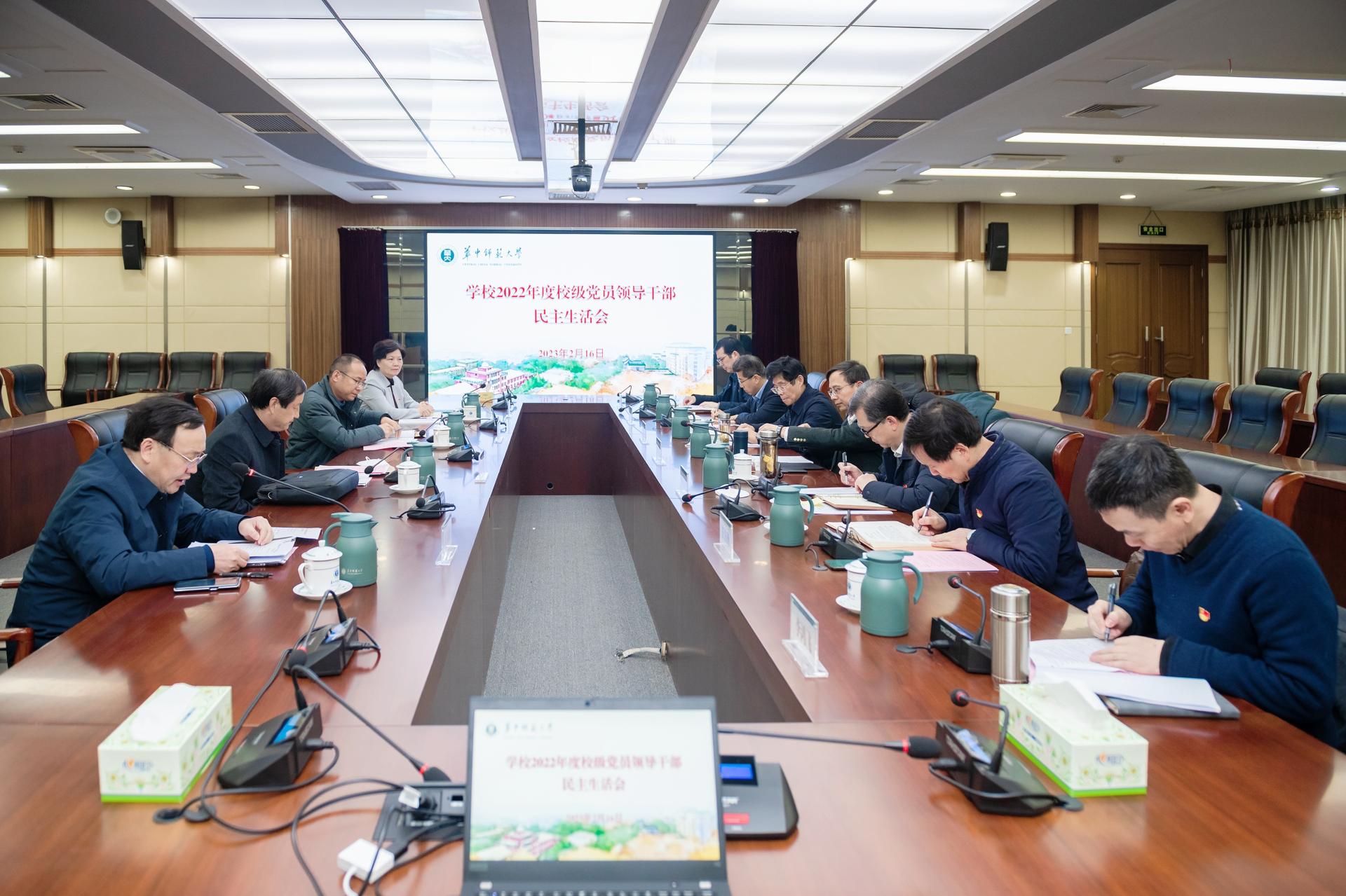 华大在线讯(通讯员 龚炜)根据党中央统一部署和教育部党组、湖北省委工作安排,2月16日上午,学校在逸夫国际会议中心二楼会议室召开2022年度校级党员领导干部民主生活会。教育部督导组组长齐文远、督导组成员潘常刚等到会指导,校党委书记夏立新主持会议,校领导班子全体成员参加会议。