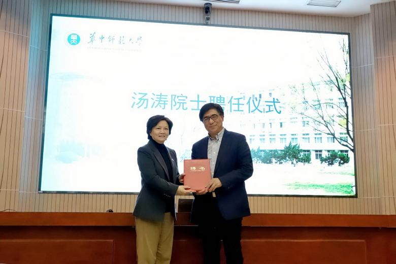 郝芳华为汤涛院士颁发“华大论坛”主讲人聘书