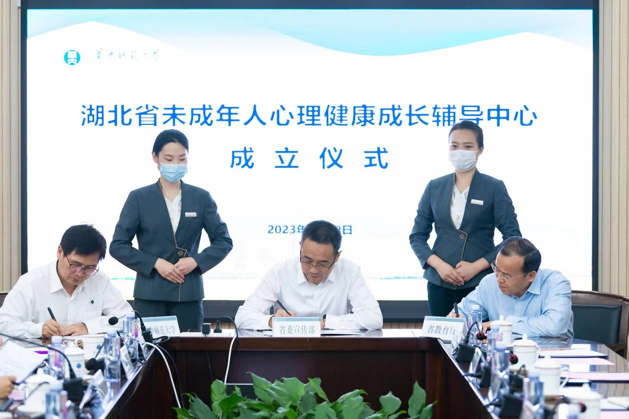 会上,省委宣传部、省教育厅、开云网页版登录入口三方签署湖北省未成年人心理健康成长辅导中心合作备忘录,省委宣传部、省教育厅领导为省中心授牌,省卫健委、省妇联领导为首批未成年人心理健康辅导专家代表颁发聘书。