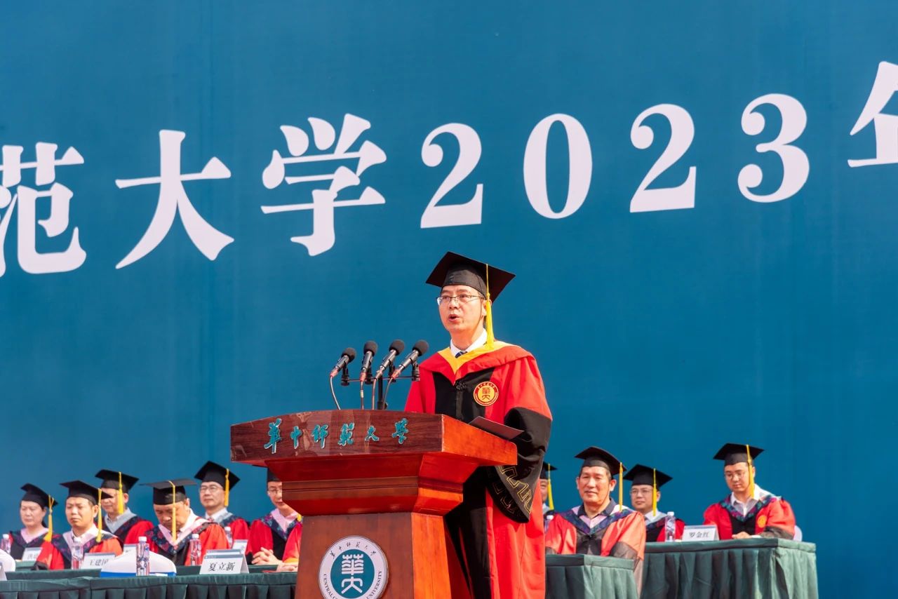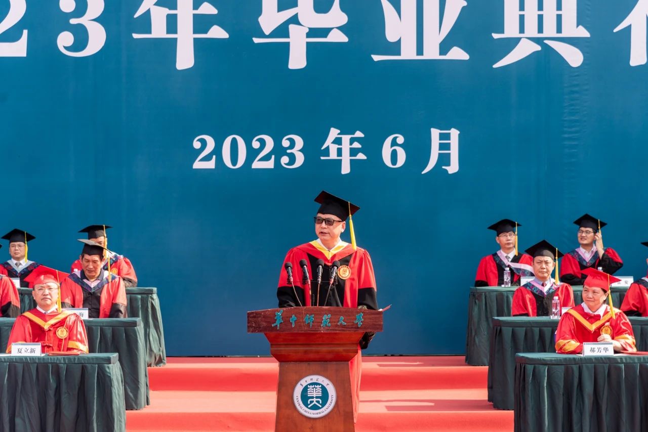 华大在线讯(记者 王丽婧)6月14日,我校2023年毕业典礼暨学位授予仪式在佑铭体育场举行。校党委书记夏立新,校长郝芳华,校党委副书记查道林,副校长彭南生、李鸿飞,校长助理冯淑霞,以及学校学术委员会代表、教师代表、校友代表、各职能部门和学院负责人出席,与家长代表共同见证8248名2023届毕业生圆满完成学业、开启崭新人生征程的辉煌时刻。典礼由校党委副书记陈迪明主持。