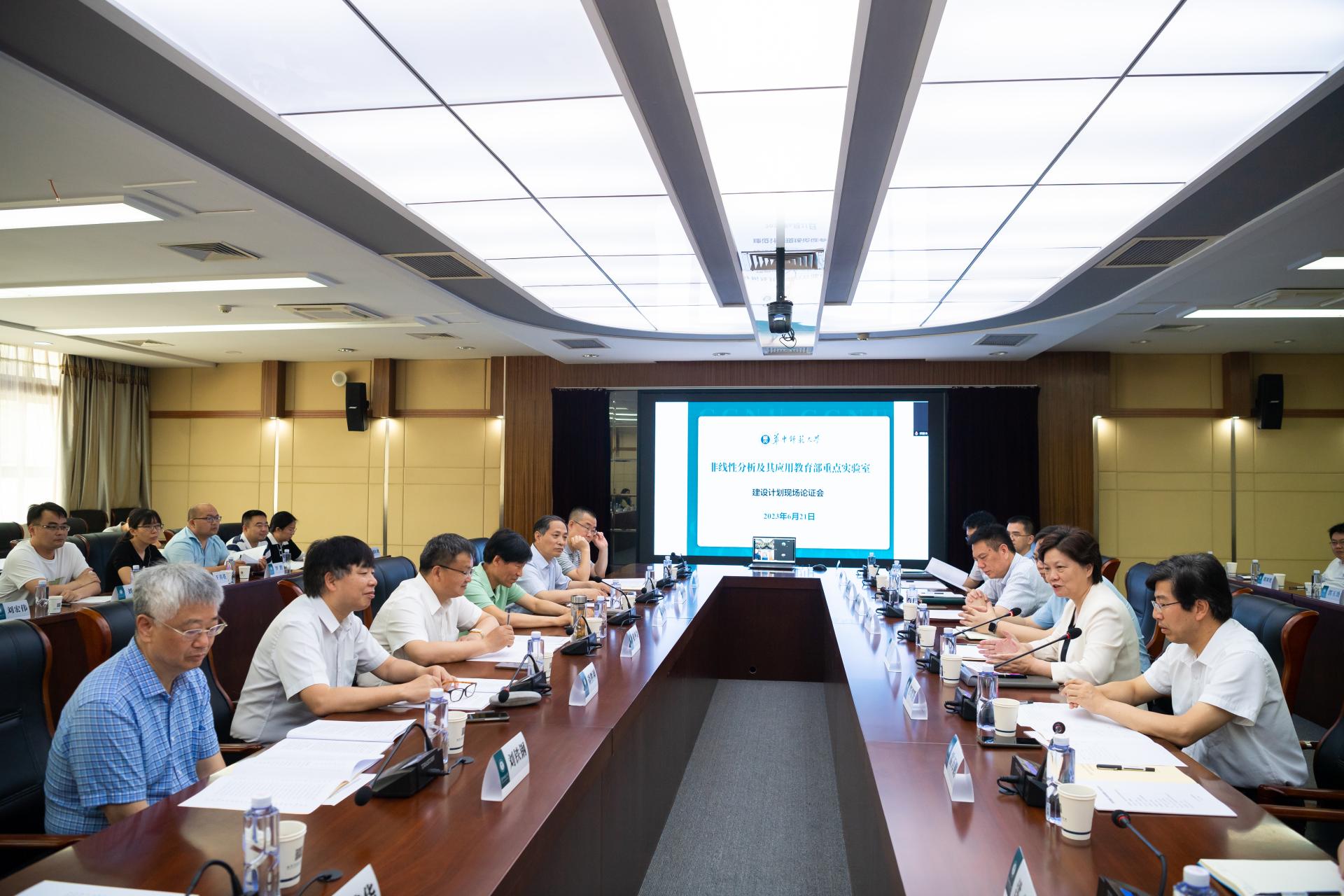 华大在线讯(通讯员 数轩)6月21日,教育部科学技术与信息化司在我校组织召开非线性分析及其应用教育部重点实验室建设计划论证会。武汉大学校长张平文院士、南开大学白承铭教授、首都师范大学崔恒建教授、北京工商大学校长郭建华教授、北京航空航天大学刘铁钢教授、南京大学秦厚荣教授、华东师范大学谈胜利教授等论证专家组成员出席。校长郝芳华出席开幕式并致辞。开幕式由实验室主任、副校长彭双阶主持。