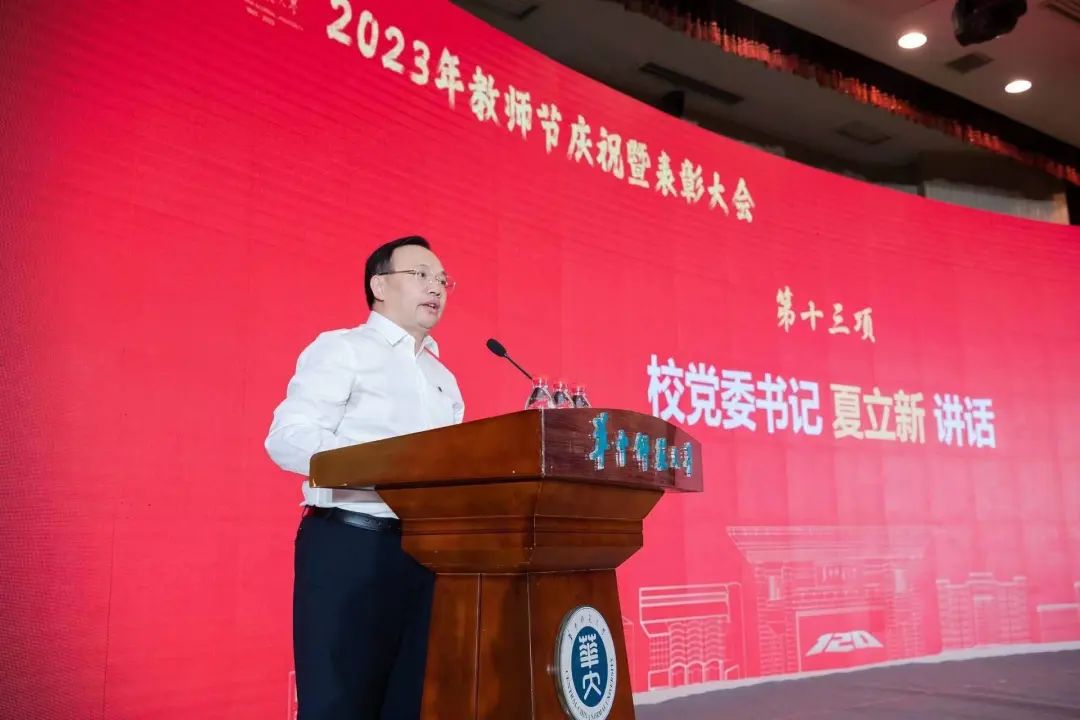 校长郝芳华在致辞中,向辛勤耕耘在教学科研、管理服务一线的全体教职员工,致以节日的问候;向为学校建设发展倾情付出的离退休老同志,致以崇高的敬意;向刚刚加入华师大家庭的新一批“华师人”表示诚挚欢迎;向受到表彰的先进集体和先进个人表示热烈祝贺。她表示,9月9日,习近平总书记致信全国优秀教师代表,深刻阐释了中国特有的教育家精神的丰富内涵和实践要求,为新时代教师队伍建设指明了前进方向,提供了根本遵循。在服务教育强国建设、办好人民满意的教育的新征程中,广大教职员工始终是学校办学兴学的主体和中坚力量。希望大家始终牢记习近平总书记重要指示精神,以教育家为榜样,坚定心有大我、至诚报国的理想信念,陶冶言为士则、行为世范的道德情操,涵养启智润心、因材施教的育人智慧,秉持勤学笃行、求是创新的躬耕态度,勤修乐教爱生、甘于奉献的仁爱之心,树立胸怀天下、以文化人的弘道追求,立足建校120周年新起点,赓续光荣传统,锚定一流目标,奋力谱写学校事业高质量发展新篇章。