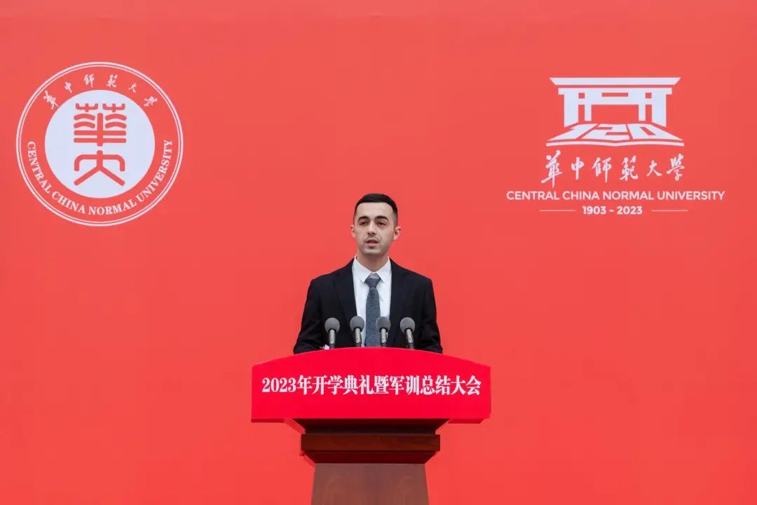 “在我踏进桂子山的那一刻,我就强烈地感受到了校园的美丽、老师们的热情和同学们的友善。”国际学生新生代表、国际文化交流学院2023级阿塞拜疆籍汉语国际教育专业硕士研究生肖煜飞期待与全体新生一起,在桂子山这座知识的殿堂里学习交流,携手成长,将华师故事、中国声音带向世界。