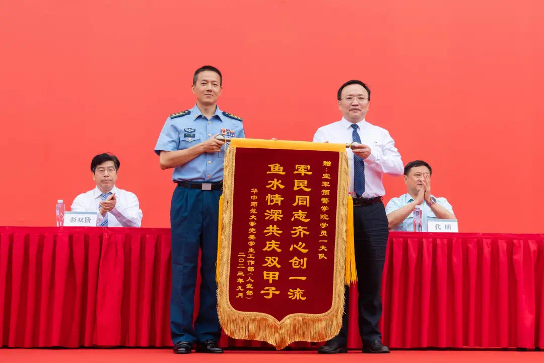 华大在线讯(记者 杨钰灿 黄妍妍)青春因磨砺而出彩,人生因奋斗而升华。9月24日,我校2023年开学典礼暨军训总结大会在佑铭体育场举行。中国人民解放军空军预警学院副院长代明、一大队政委何勇,校领导夏立新、郝芳华、查道林、陈厚丰、任友洲、彭双阶出席。