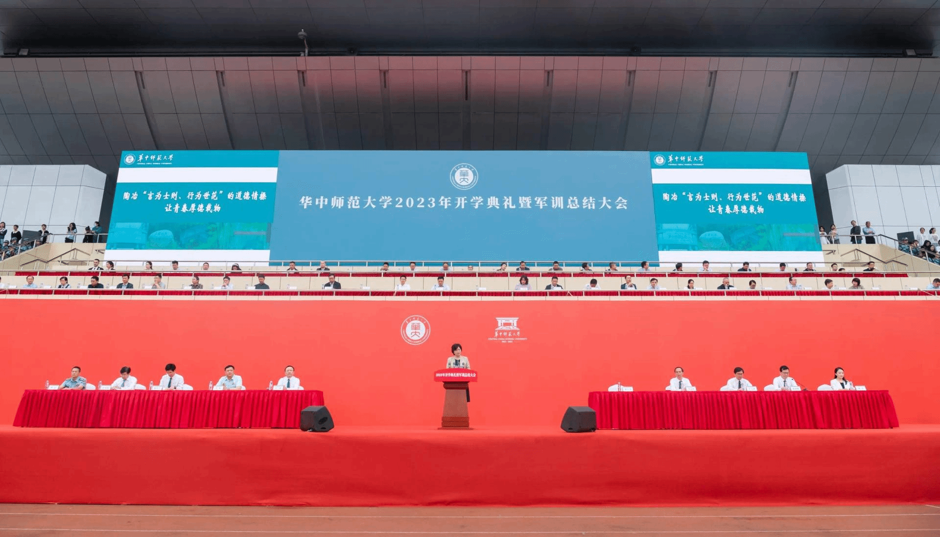 校长郝芳华代表全校师生员工向全体2023级新生表示热烈欢迎。在题为《以教育家精神涵养成才之路》的讲话中,郝芳华回顾了华师120年“振兴师范教育、培育祖国栋梁”的发展历程,将华师学子成长发展的奋进方向与习近平总书记提到的“大力弘扬教育家精神”紧密结合,叮嘱同学们“始终牢记习近平总书记的重要嘱托,以教育家精神为炬,用教育家精神涵养成才之路”。