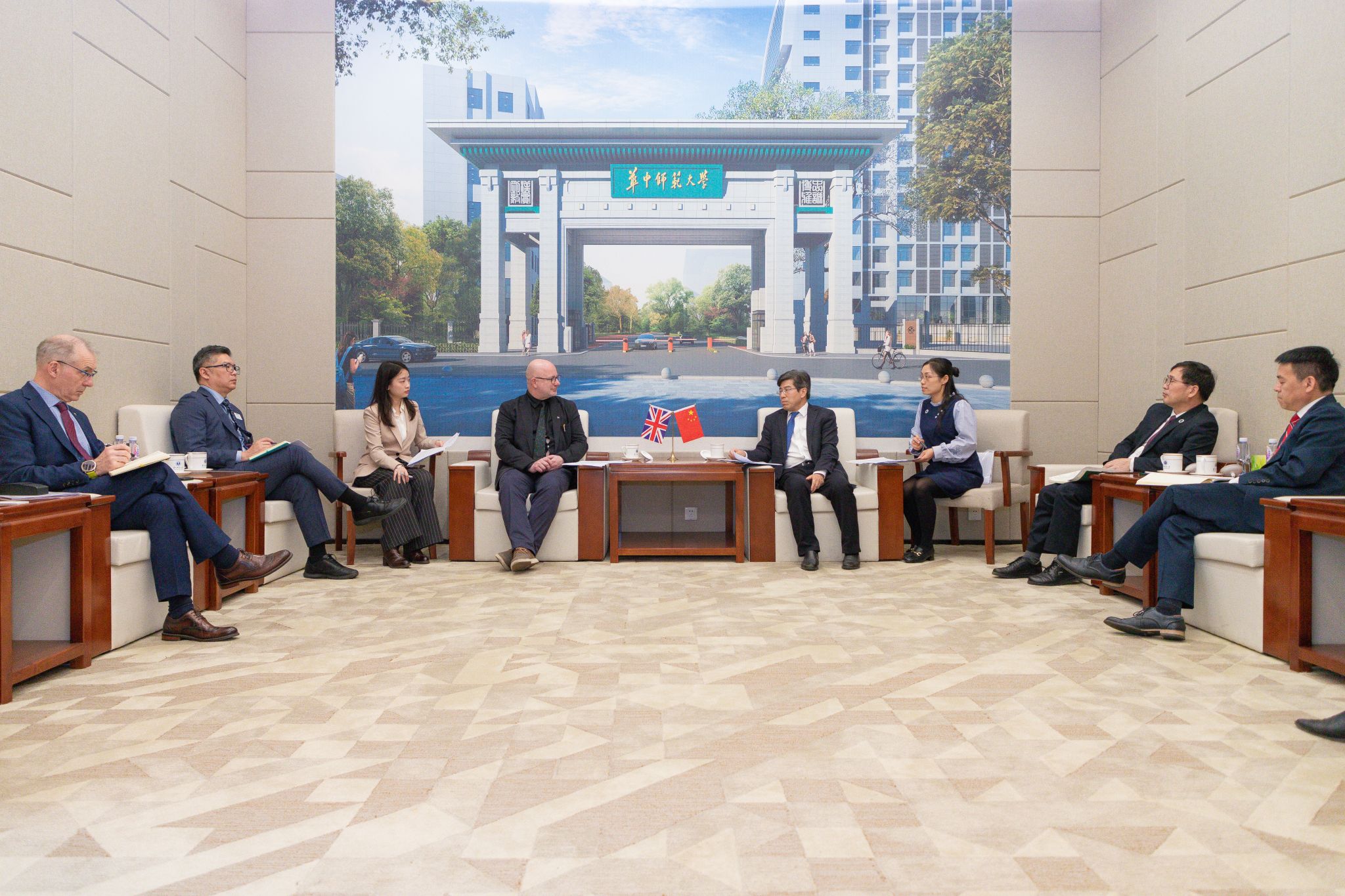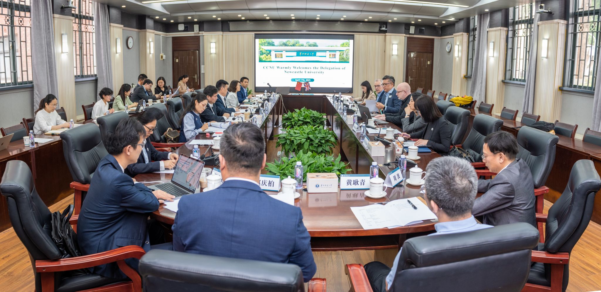 华大在线讯(通讯员 张芷珣 刘方)4月16日至18日,英国纽卡斯尔大学全球事务副校长克里斯·怀特海德(Chris Whitehead)一行访问我校,商谈开展战略合作事宜,校长彭双阶、副校长任友洲会见代表团。