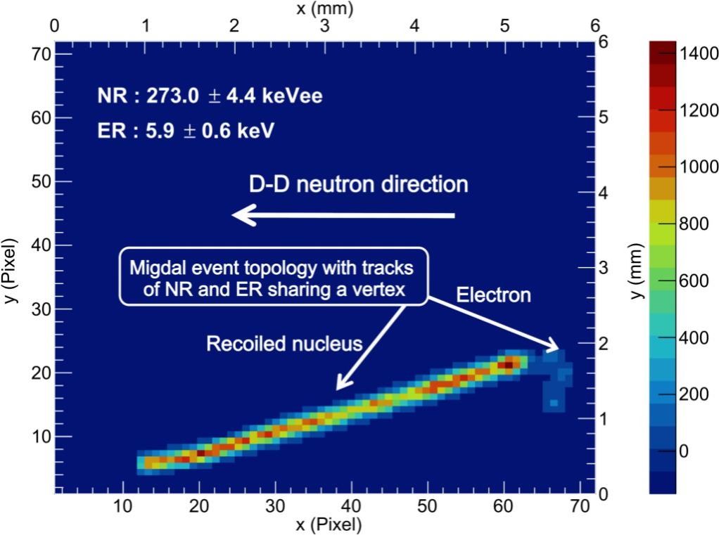 米格达尔效应由苏联物理学家阿尔卡季·米格达尔于1939年提出,描述了原子核反冲时通过电场变化将能量转移给核外电子、形成“共顶点”带电径迹的物理过程。这一效应被认为是突破轻暗物质探测阈值的重要路径,但中性粒子碰撞中的该效应长期缺乏直接实验验证,成为制约相关暗物质探测研究的关键瓶颈。